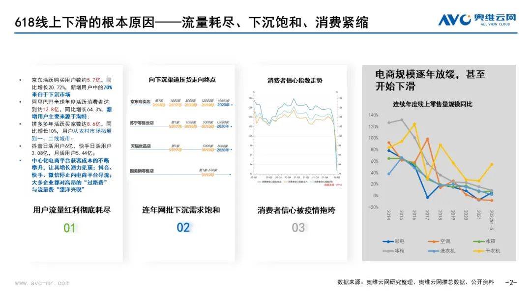 复盘今年618市场下滑的原因时我们发现,前文中提及的消费者信心下降“功不可没”。除此之外,影响618市场表现的主要原因还包括以下两个方面: