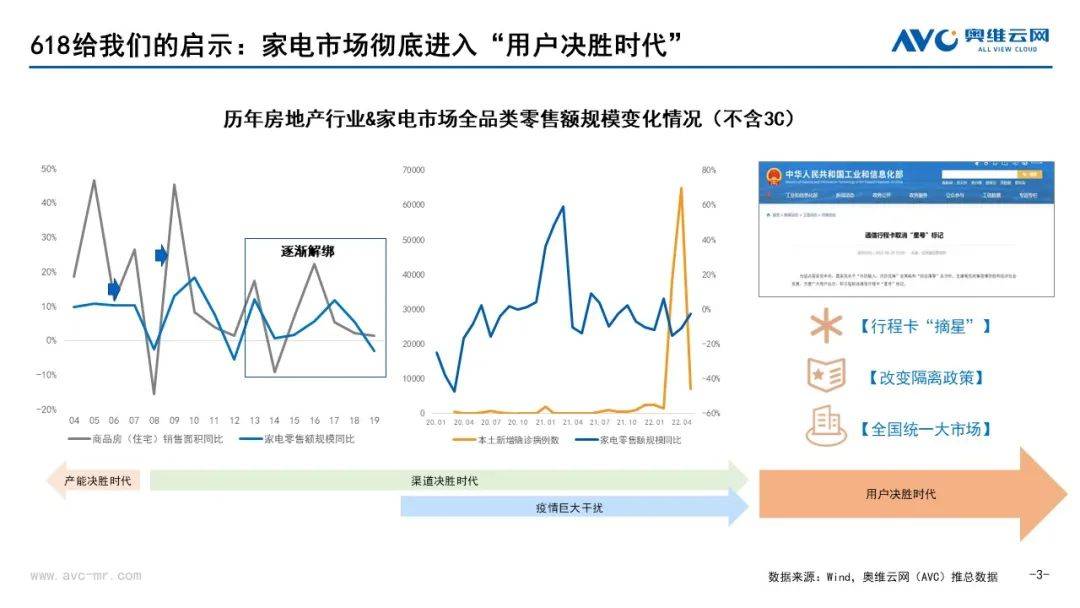 曾几何时,线上一度被认为家电市场的最后增长引擎。618市场数据的下滑再一次提醒我们重新审视中国家电业所处的市场阶段,以及行业背后真正的发展推动力——已经从渠道驱动转换为用户驱动。因为在销售渠道深度碎片化的当下,行业已经无法通过渠道建设再创造出新的需求,而渠道的发展分化不过是将成交场所从一个平台腾挪到另一个平台罢了,而在这种腾挪中,不同的行业竞争企业通过布局侧重、转换速度、效率差异等方式在存量的市场中对需求进行重新分配。中国家电市场已彻底进入“用户决胜时代”。